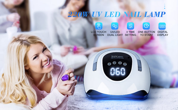 Nail Dryer with 57 pieces 220W(Max) double light source. The nail dryer works great for all kinds of nail gel polish.